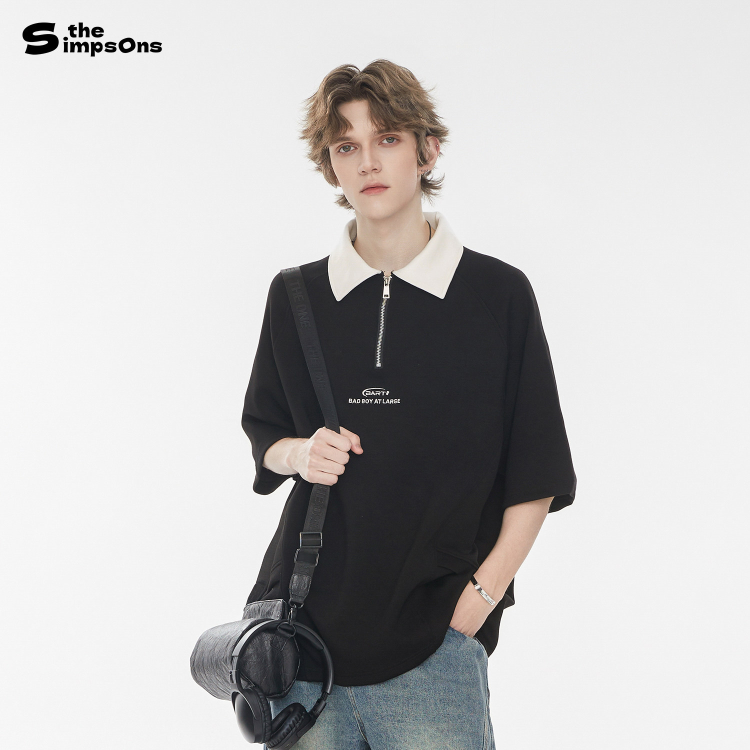 【郝熠然同款】辛普森一家美式潮流夏季翻领短袖T恤半拉链POLO衫