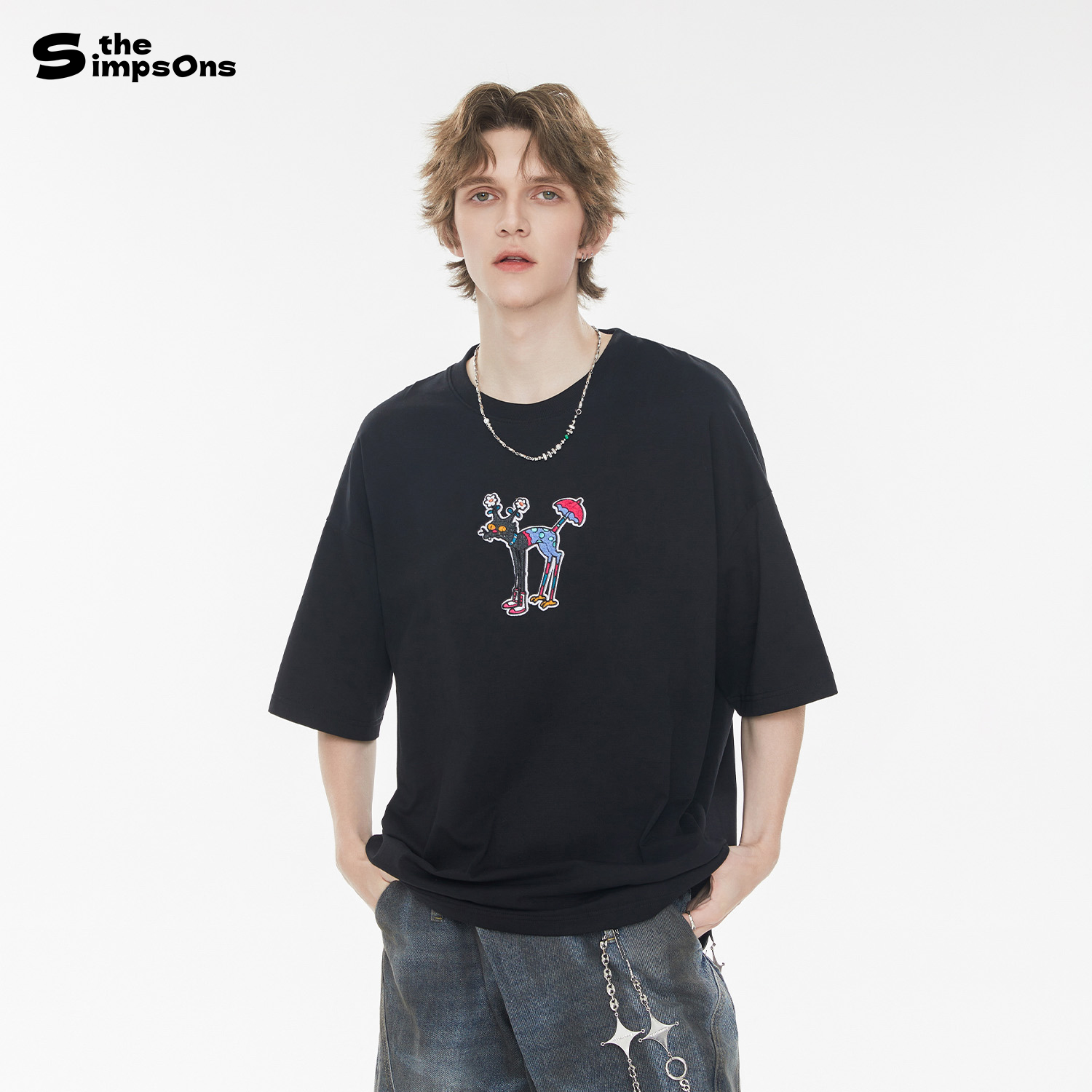 【喻言同款】辛普森一家短袖T恤男夏美式潮牌刺绣简约情侣上衣女
