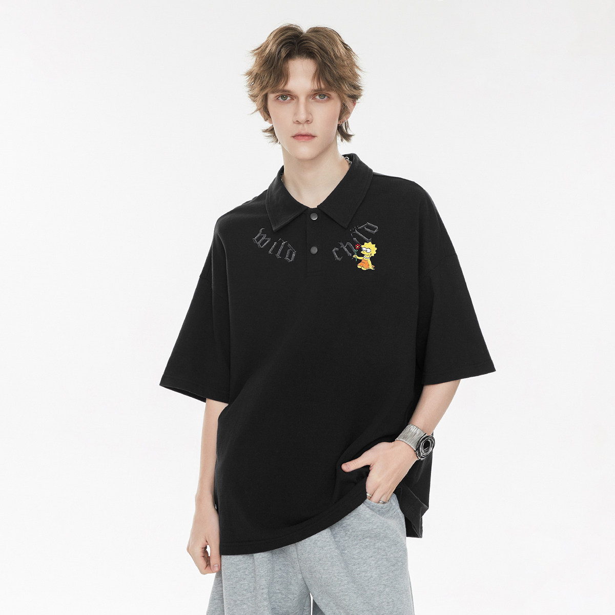 辛普森一家Polo衫短袖2025新款美式复古重磅刺绣翻领宽松纯色T恤