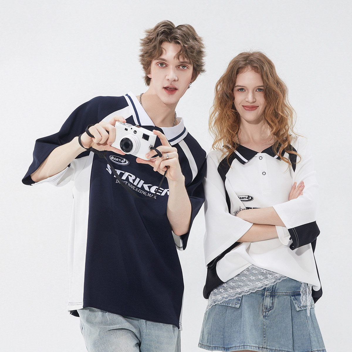 辛普森一家Polo短袖2025夏季新款钉珠字母印花设计情侣翻领上衣男