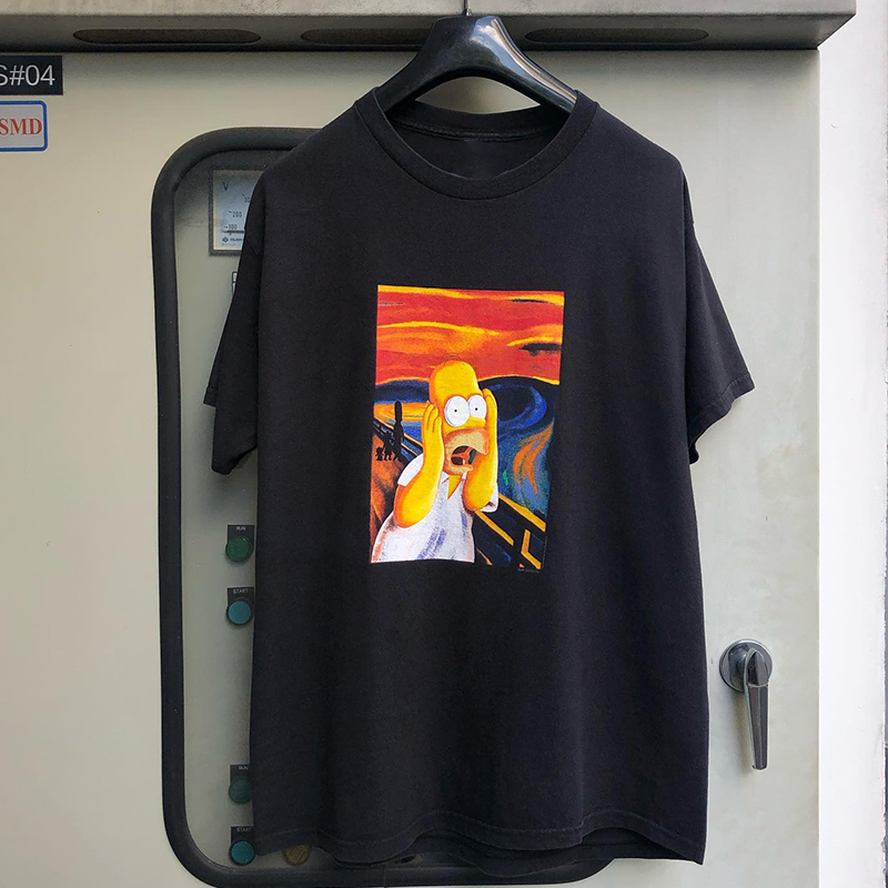 卡通创意设计感辛普森联名呐喊油画风oversize短袖男女重磅棉T恤