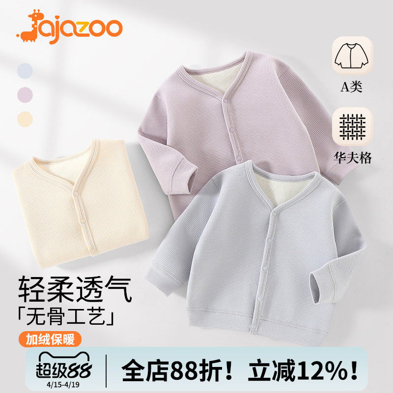 JaJazoo宝宝加绒上衣秋冬保暖秋衣纯棉无骨打底开衫婴儿内衣外套