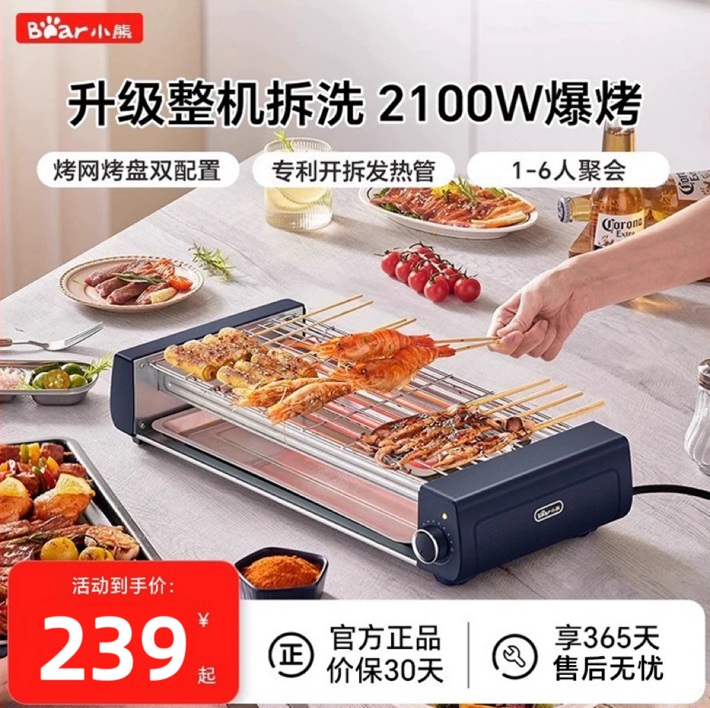 小熊烤肉锅家用烤串机室内自助烤羊肉串电烤炉露营户外小型烹饪机