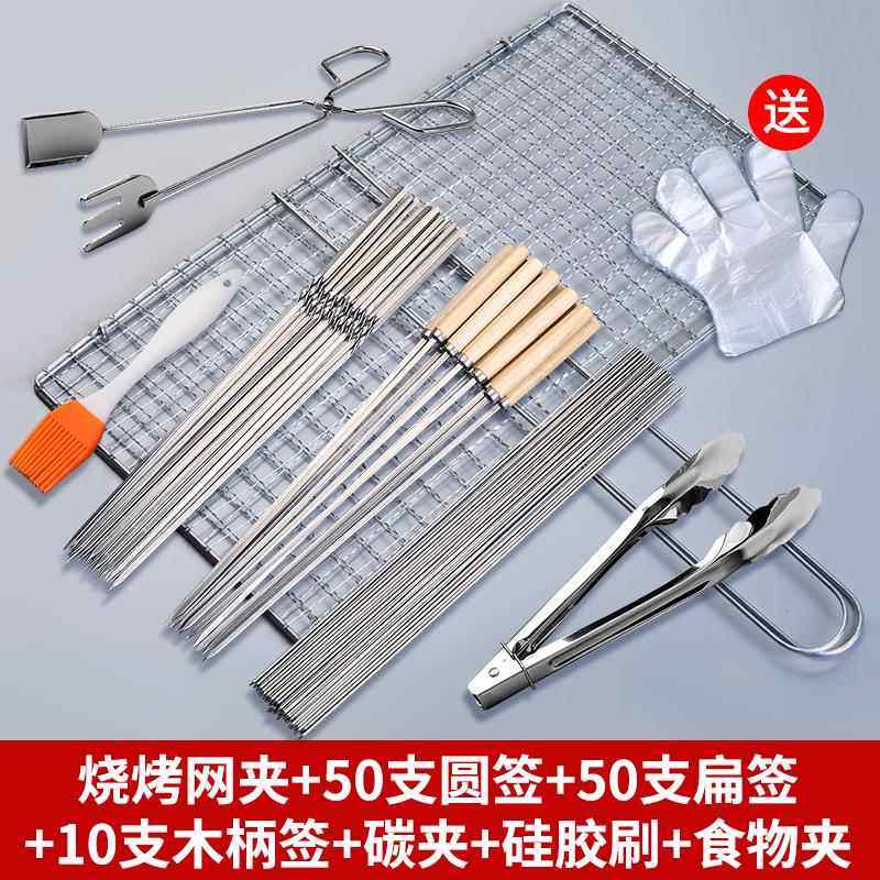 烧烤签子不锈钢烤鱼夹烧烤工具户外羊肉串烧烤针烧烤签组合串肉器