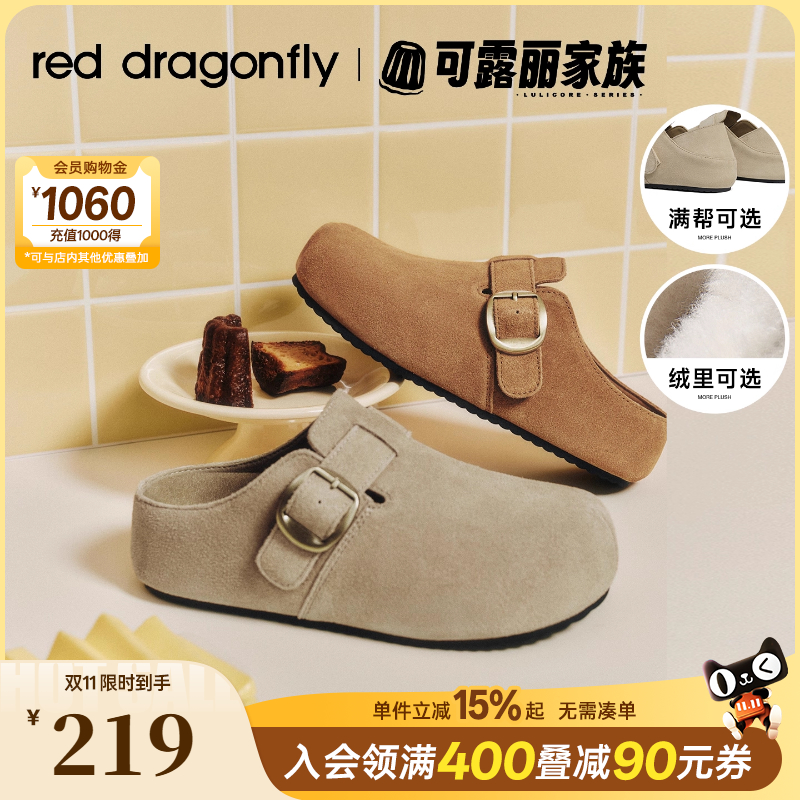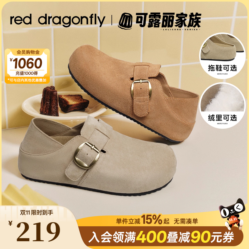 红蜻蜓可露丽厚底勃肯鞋女2025秋季新款女鞋一脚蹬单鞋毛绒半拖鞋