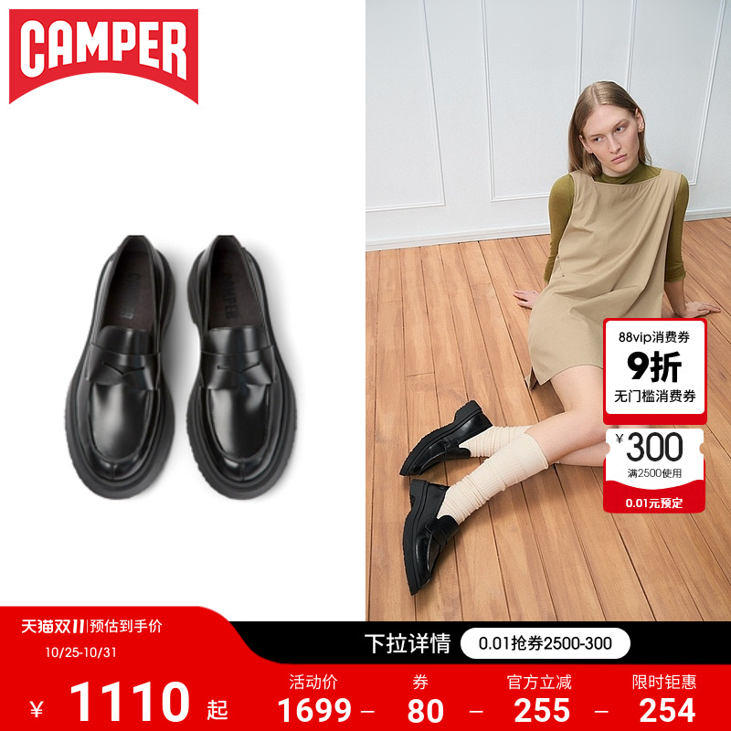 【博主同款】Camper看步女鞋walden乐福鞋女黑色一脚蹬厚底皮鞋秋