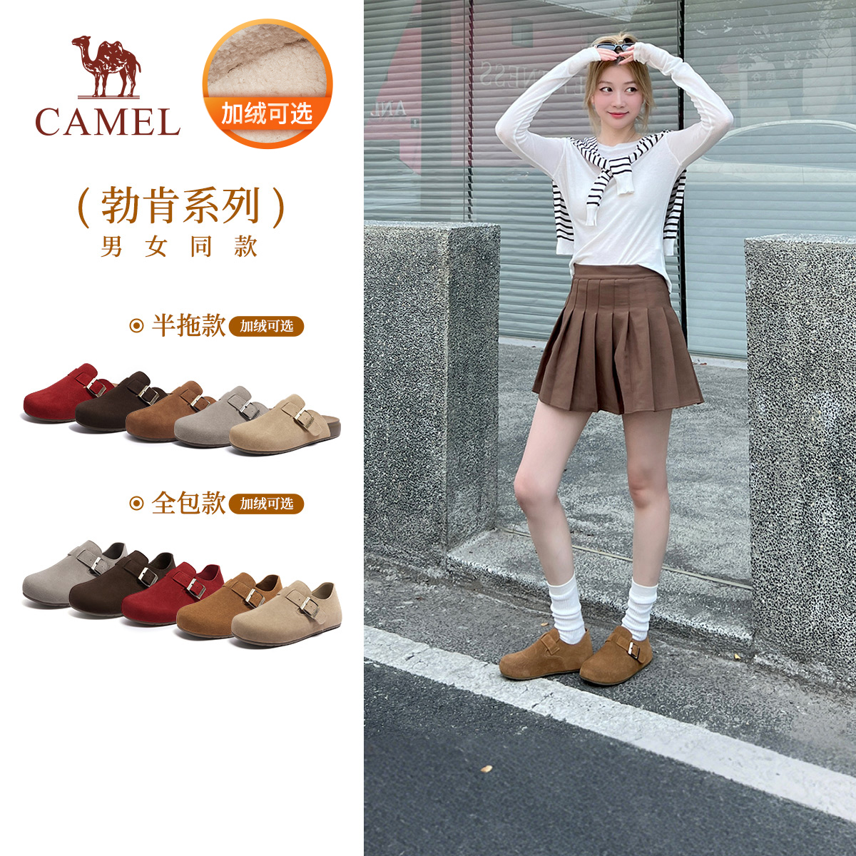 骆驼勃肯鞋女鞋2025新款真皮加绒单鞋懒人一脚蹬包头拖鞋穆勒半拖