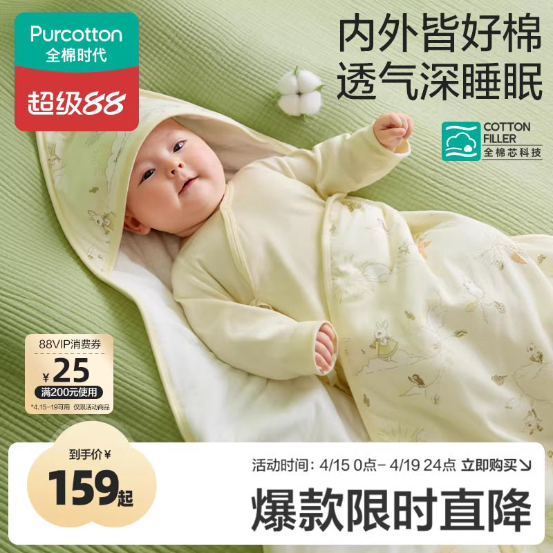 全棉时代婴儿包被新生宝宝春夏款外出包单纯棉防惊跳抱被四季襁褓