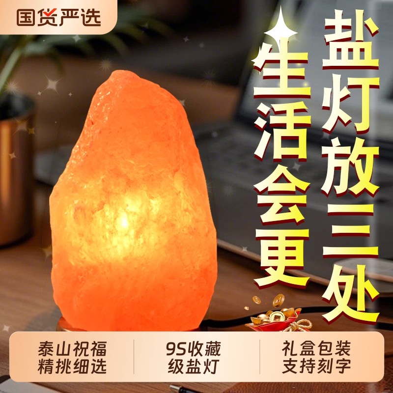 喜马拉雅盐石进口摆件招财睡眠小夜灯天然盐灯乔迁卧室摆件氛围灯