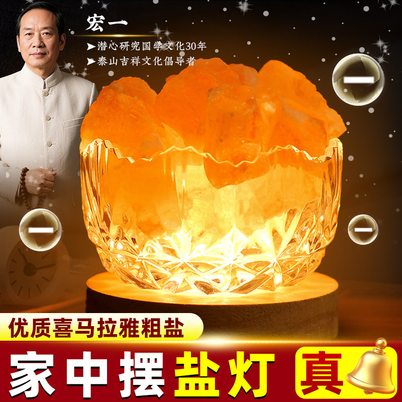 喜马拉雅盐灯摆件粗盐净宅大颗粒睡眠小夜灯玫瑰盐容器卧室氛围灯