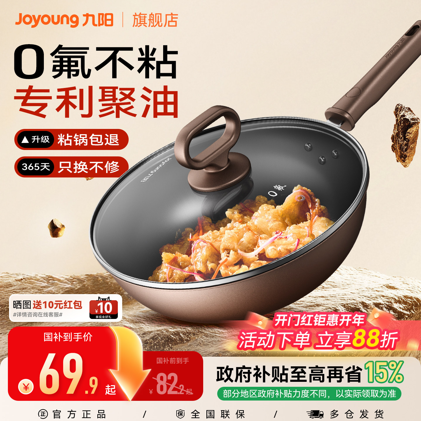 九阳不粘锅炒锅家用炒菜锅电磁炉煤燃气灶通用锅陶瓷0特氟龙平底
