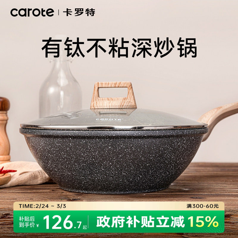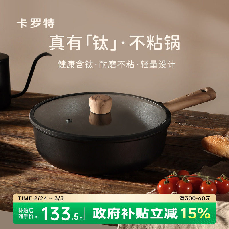 卡罗特不粘锅炒锅家用炒菜锅电磁炉燃气灶专用钛锅轻量不沾平底锅
