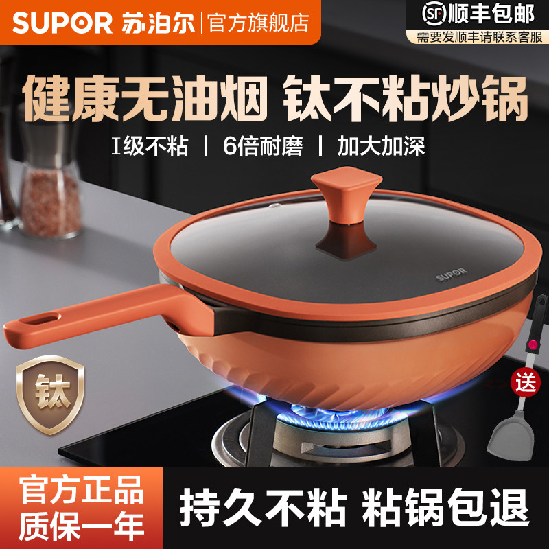 【政府补贴】苏泊尔钛不粘锅炒锅家用炒菜锅电磁炉适用官方旗舰店