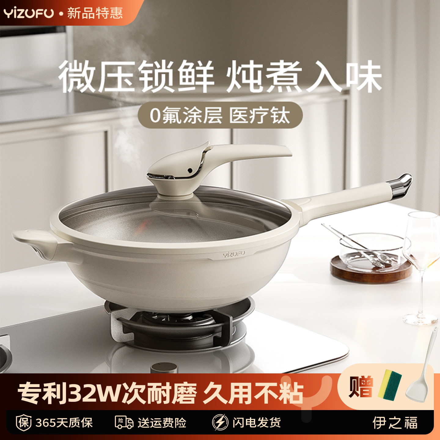 OOU钛锅不粘锅炒锅多功能家用炒菜锅平底电磁炉燃气灶适用锅具