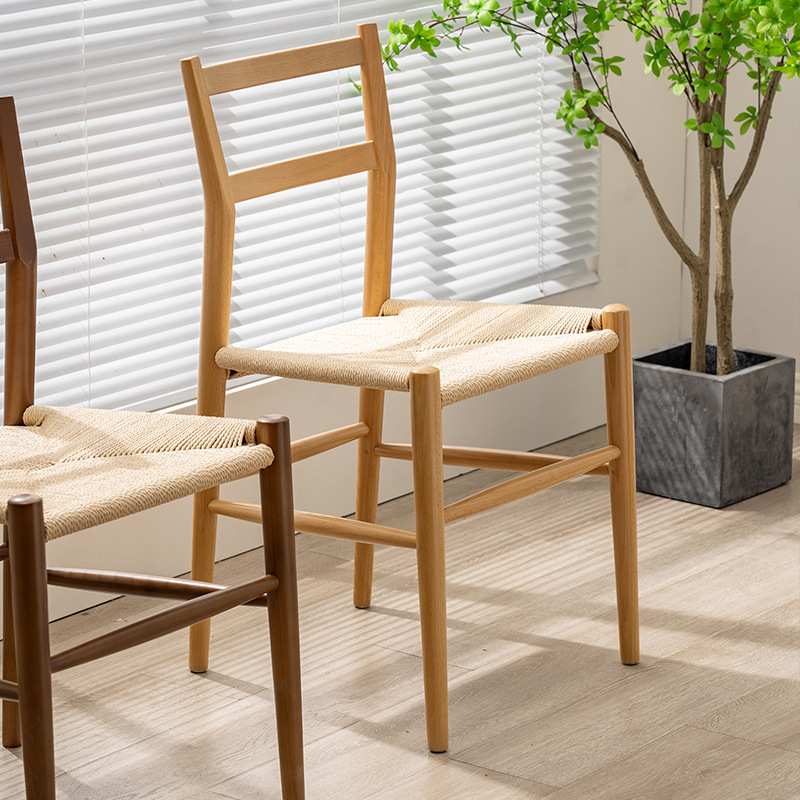 北欧编绳椅子 现代简约休闲实木榉木椅 家用设计师靠背椅中古餐椅