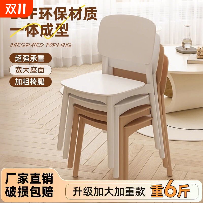 塑料餐椅现代简约家用加厚凳子叠放餐厅桌椅北约网红舒服靠背椅子