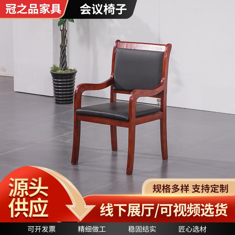 会议室办公椅子 现代简约实木带靠背扶手礼堂培训接待办公将军椅