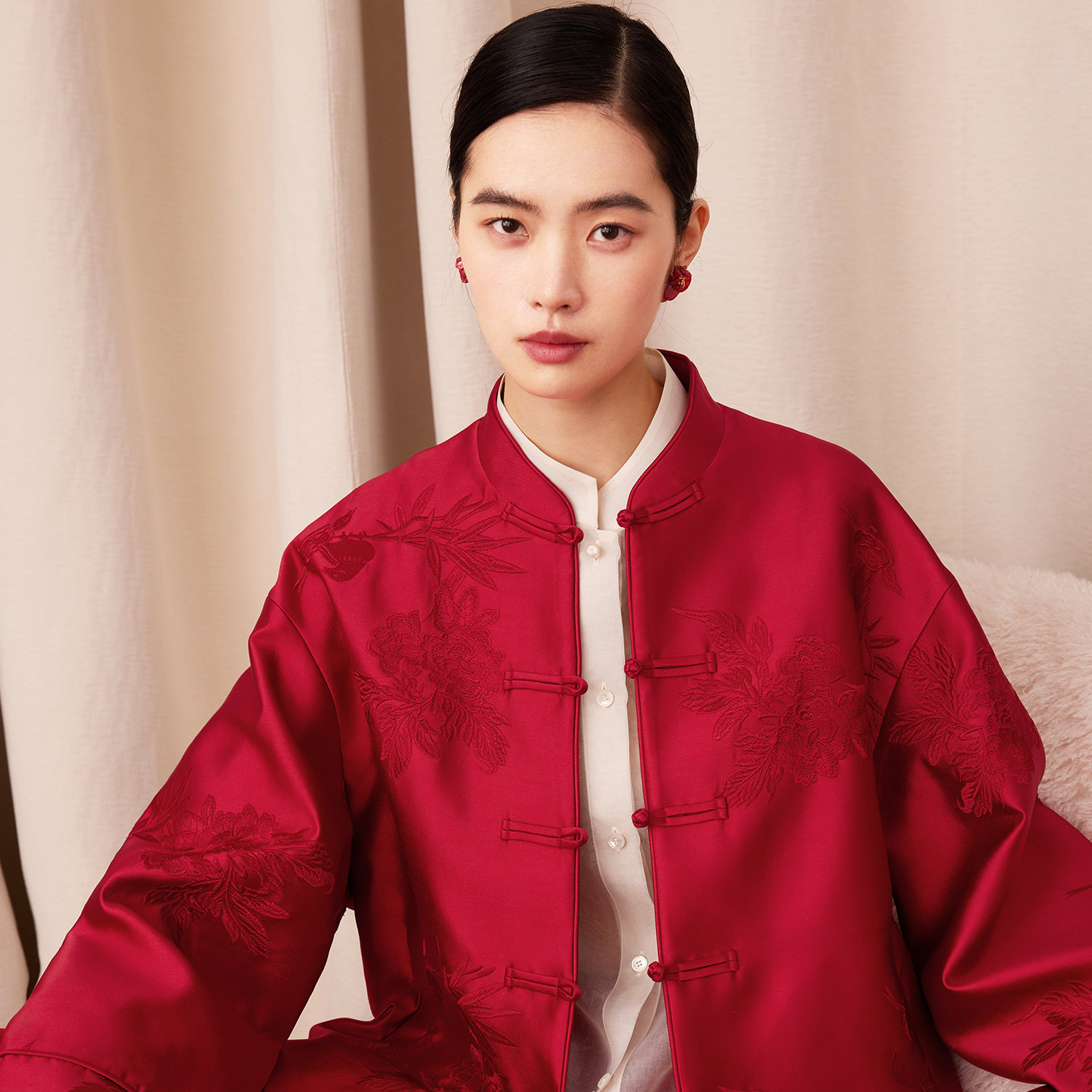 如意连云【赫菡】新年款重工绣花立领短外套女新中式国风盘扣上衣