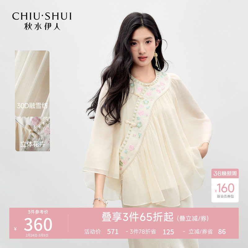 秋水伊人休闲雅致国风刺绣衬衫2026年春季新款女百搭斜襟盘扣上衣