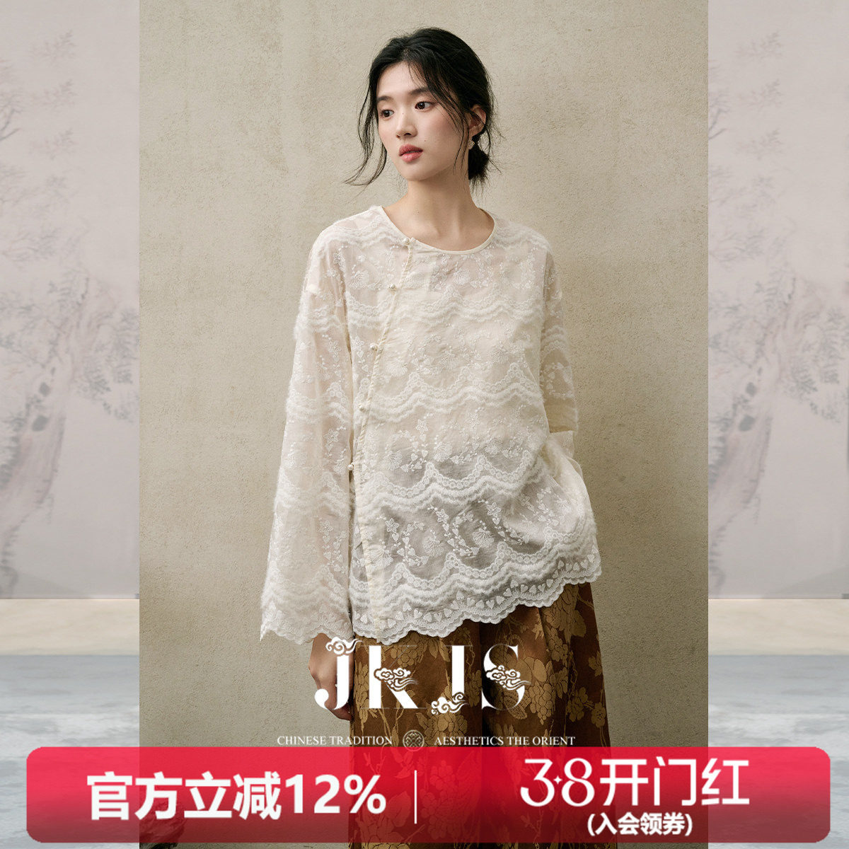 JKJS人丝提花外套女春秋复古盘扣上衣2026新款高级感新中式女装