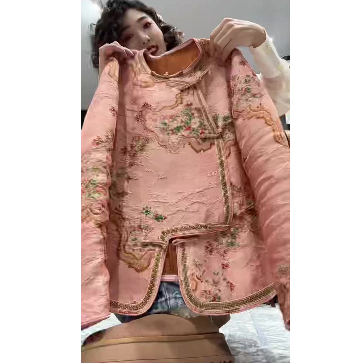 新中式国风复古粉色宋锦外套女2025早春新款高端两面穿盘扣上衣女