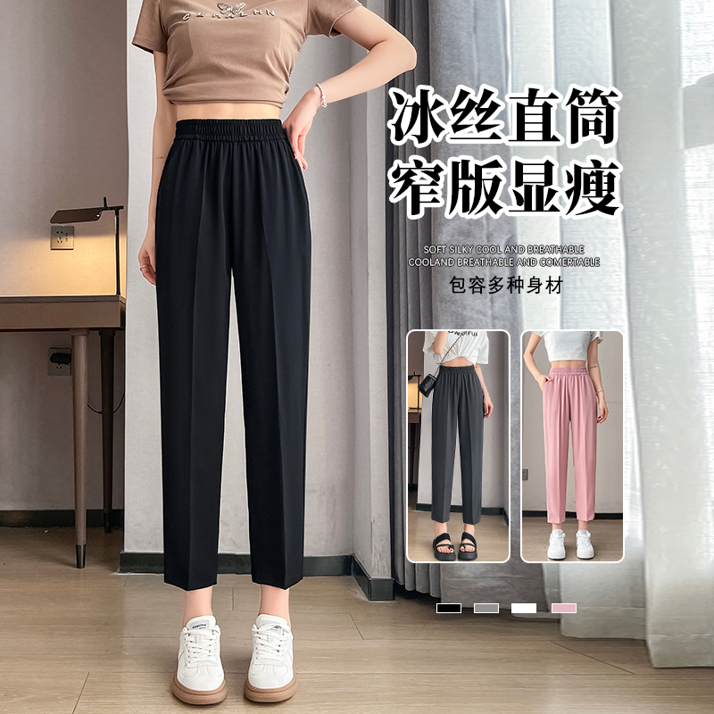 西装哈伦裤女裤子夏季薄款雪纺烟管九分休闲萝卜小脚春秋冰丝西裤