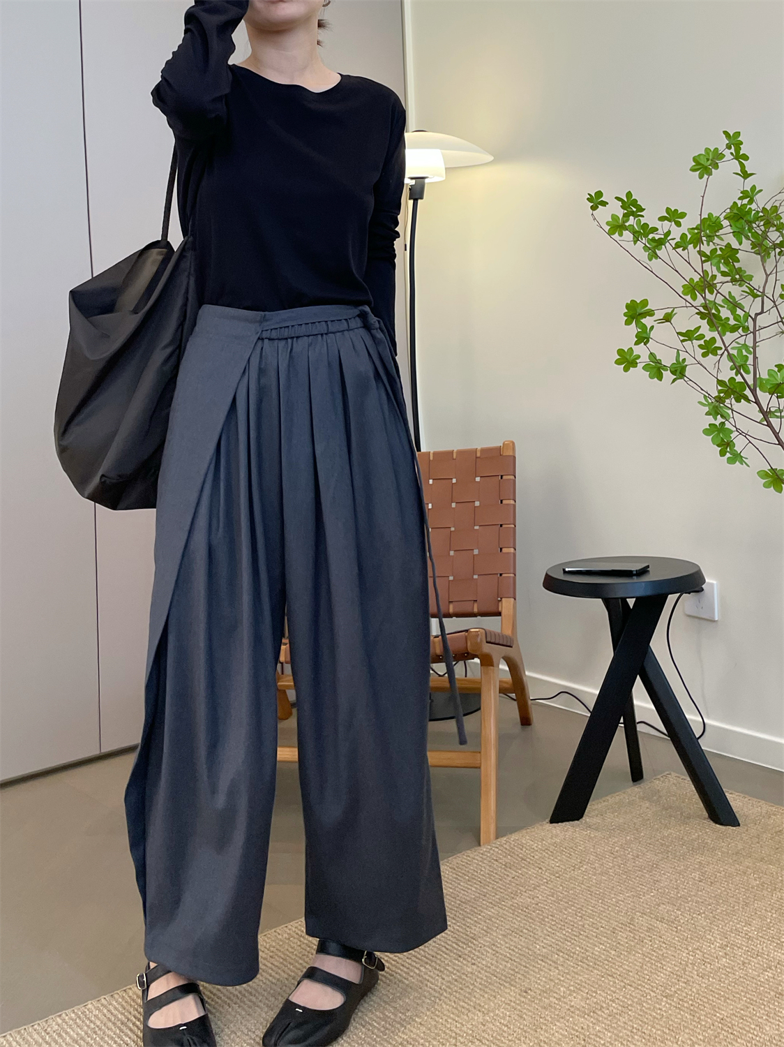 气质斜扣高腰宽松小脚西装哈伦裤女秋百搭垂感直筒阔腿休闲烟管裤