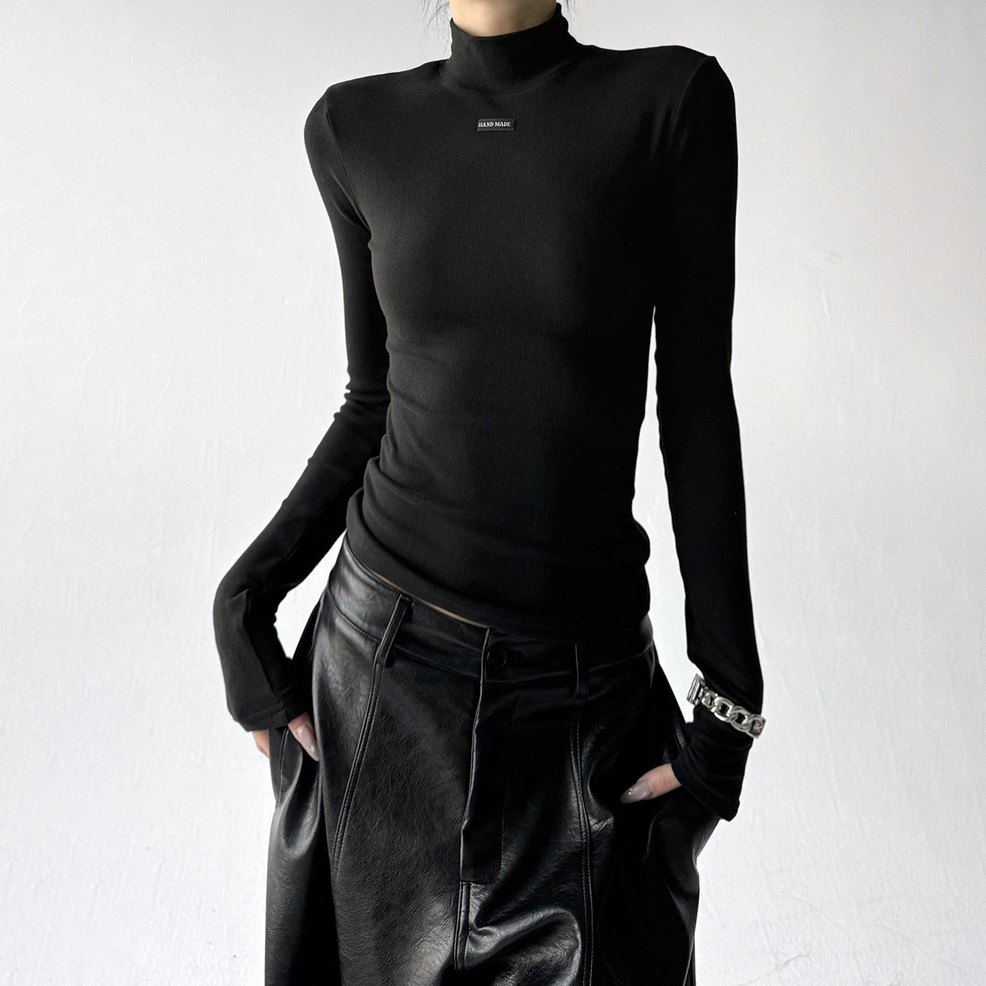 马登黑色紧身半高领打底衫仿德绒内搭上衣修身针织长袖t恤秋冬女