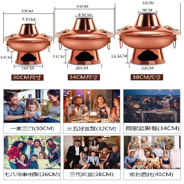 铜火锅木炭纯紫铜火锅锅具分体式铜锅火锅老北京涮肉家用商用火锅