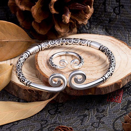 古法纯银紧箍咒孙悟空手镯情侣手环戒指一对开口手圈女实心年轻款