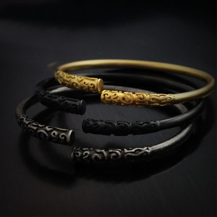 原创简约设计S925纯银孙悟空紧箍咒手工开口手镯手环男女百搭镯子
