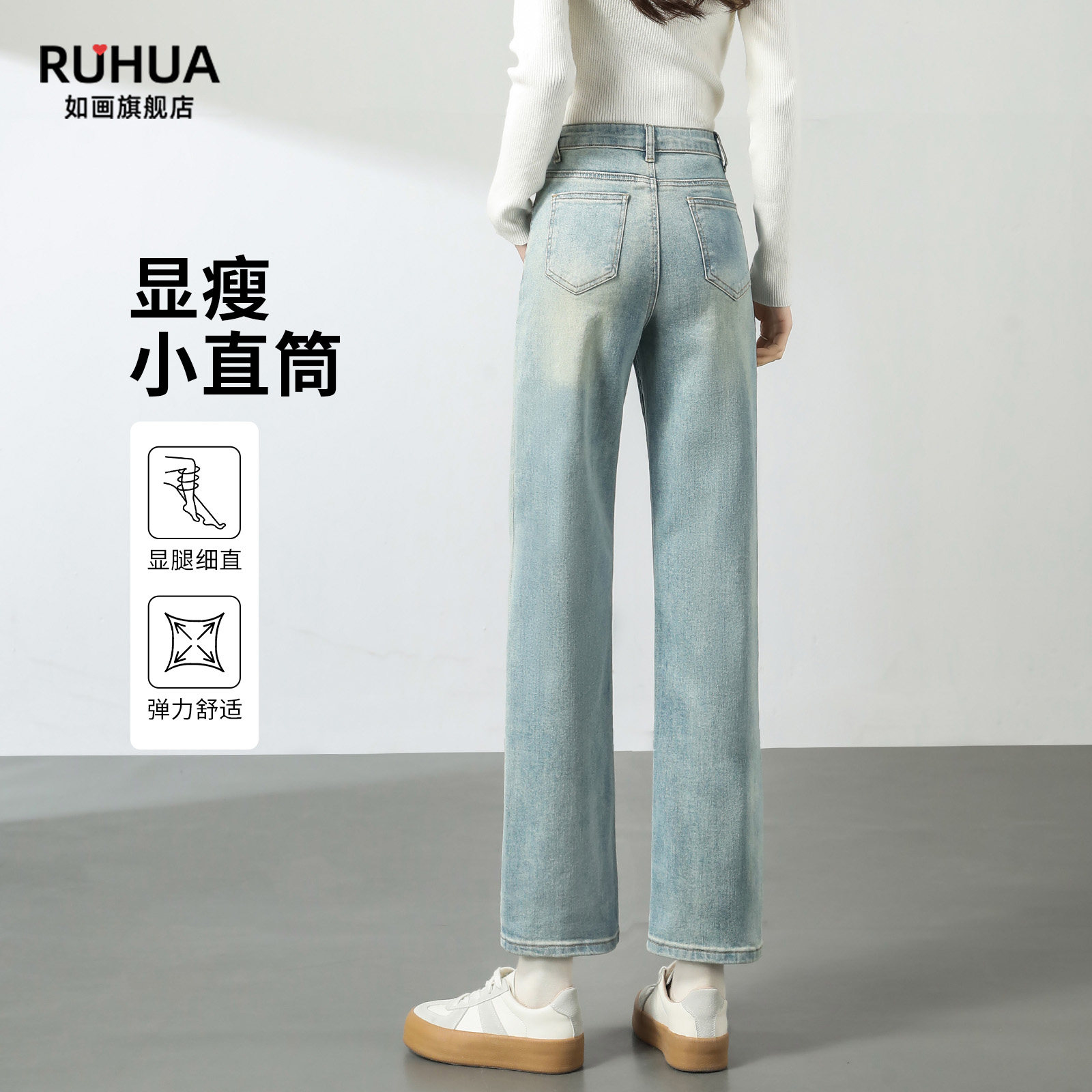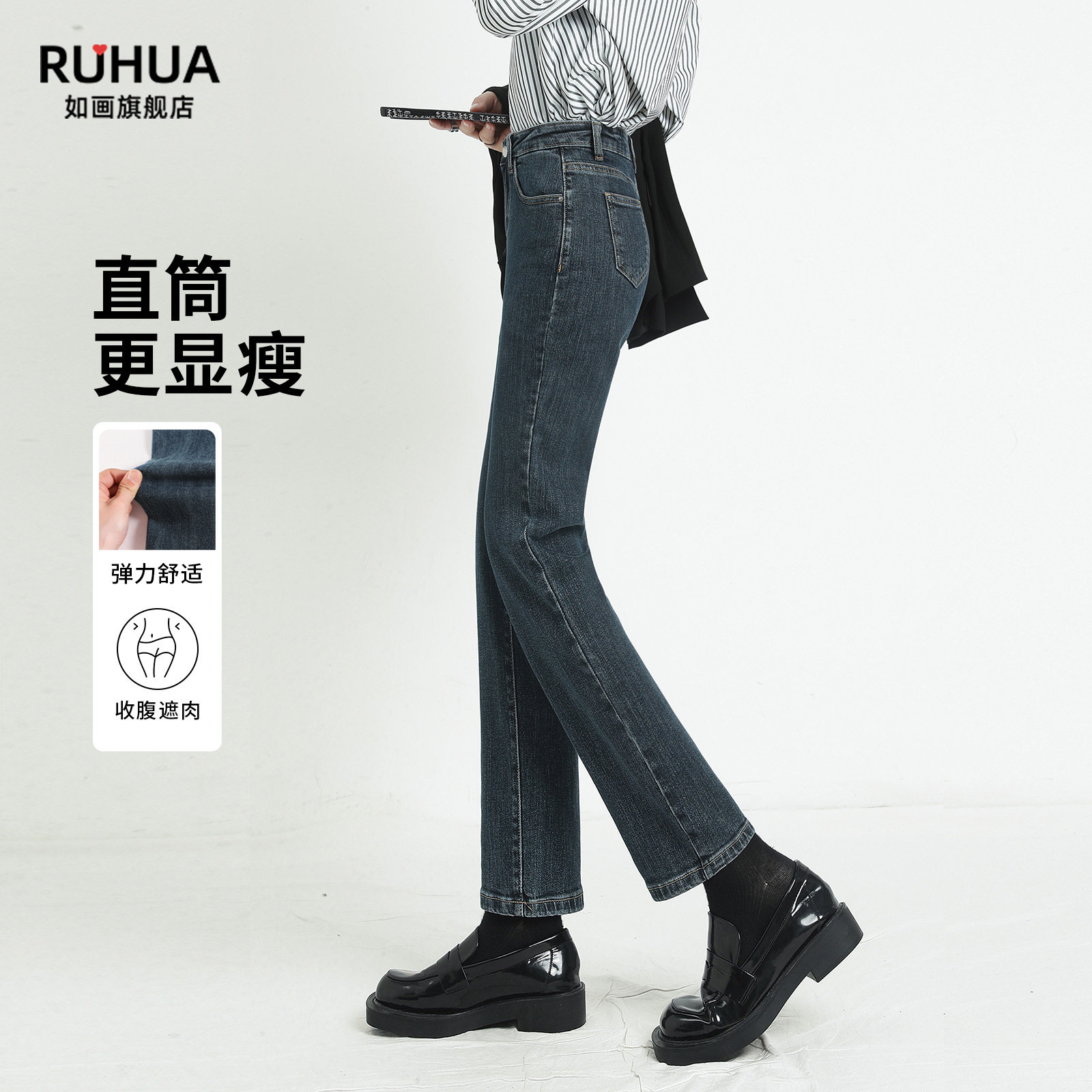 - 弹力牛仔裤女直筒长裤
