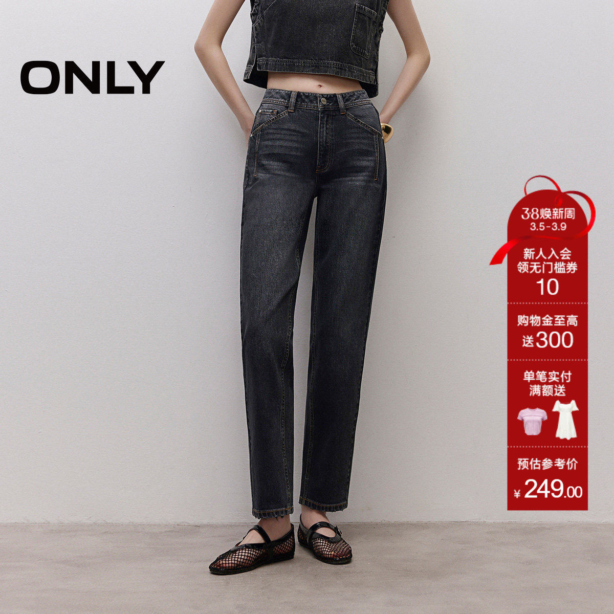 ONLY2026春季新款高腰修身显瘦解构拼接直筒裤九分裤牛仔裤女
