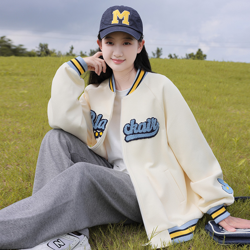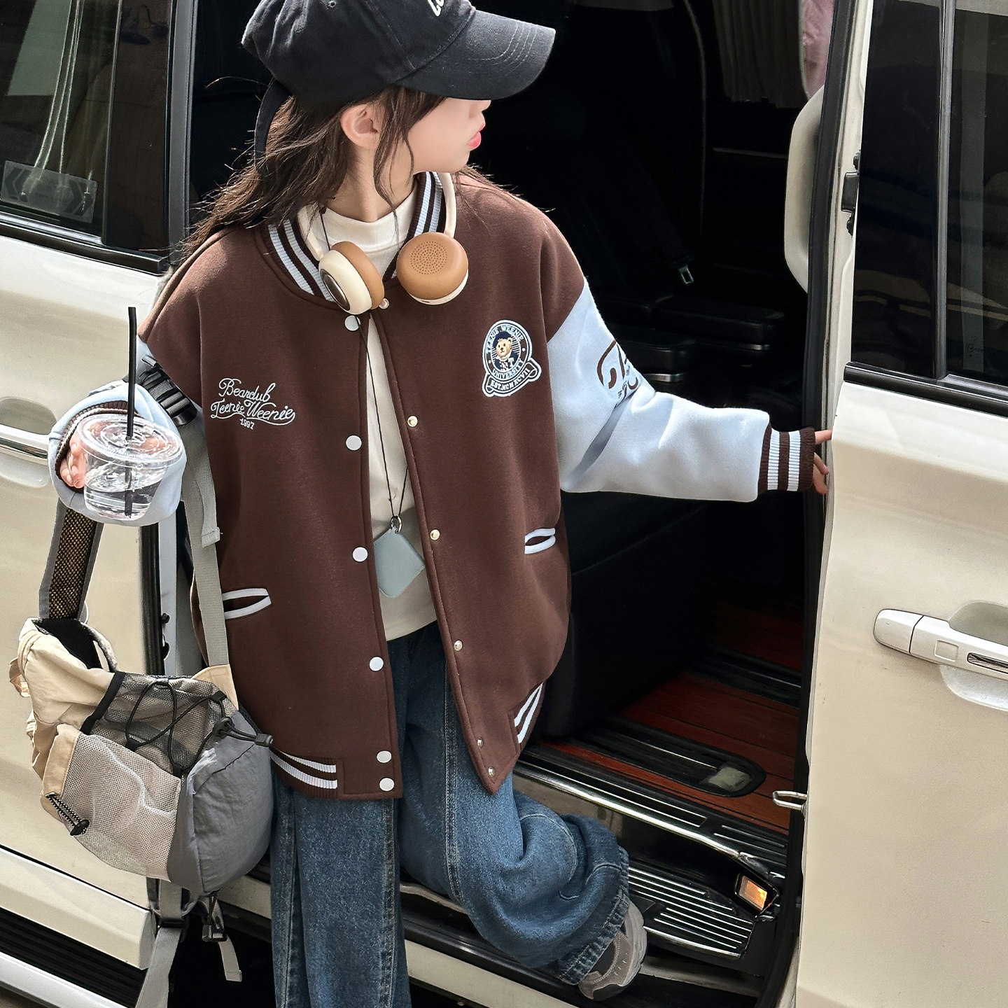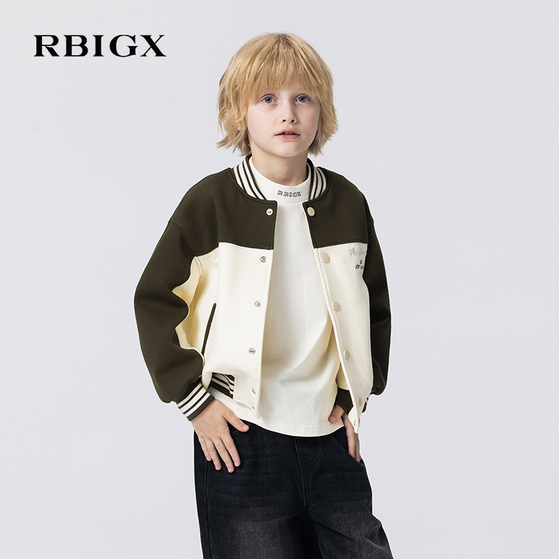 RBIGX瑞比克2025秋季新款刺绣绣花棒球服夹克撞色儿童帅气外套