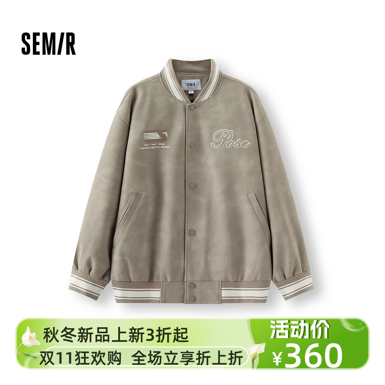 【商场同款】森马外套男秋绣花棒球服2025新款PU夹克107525108104
