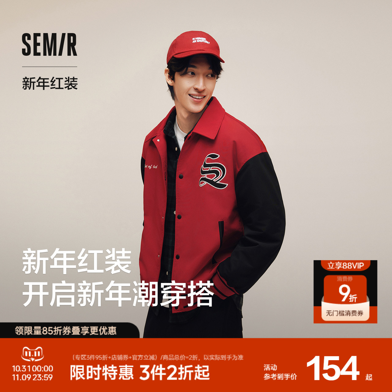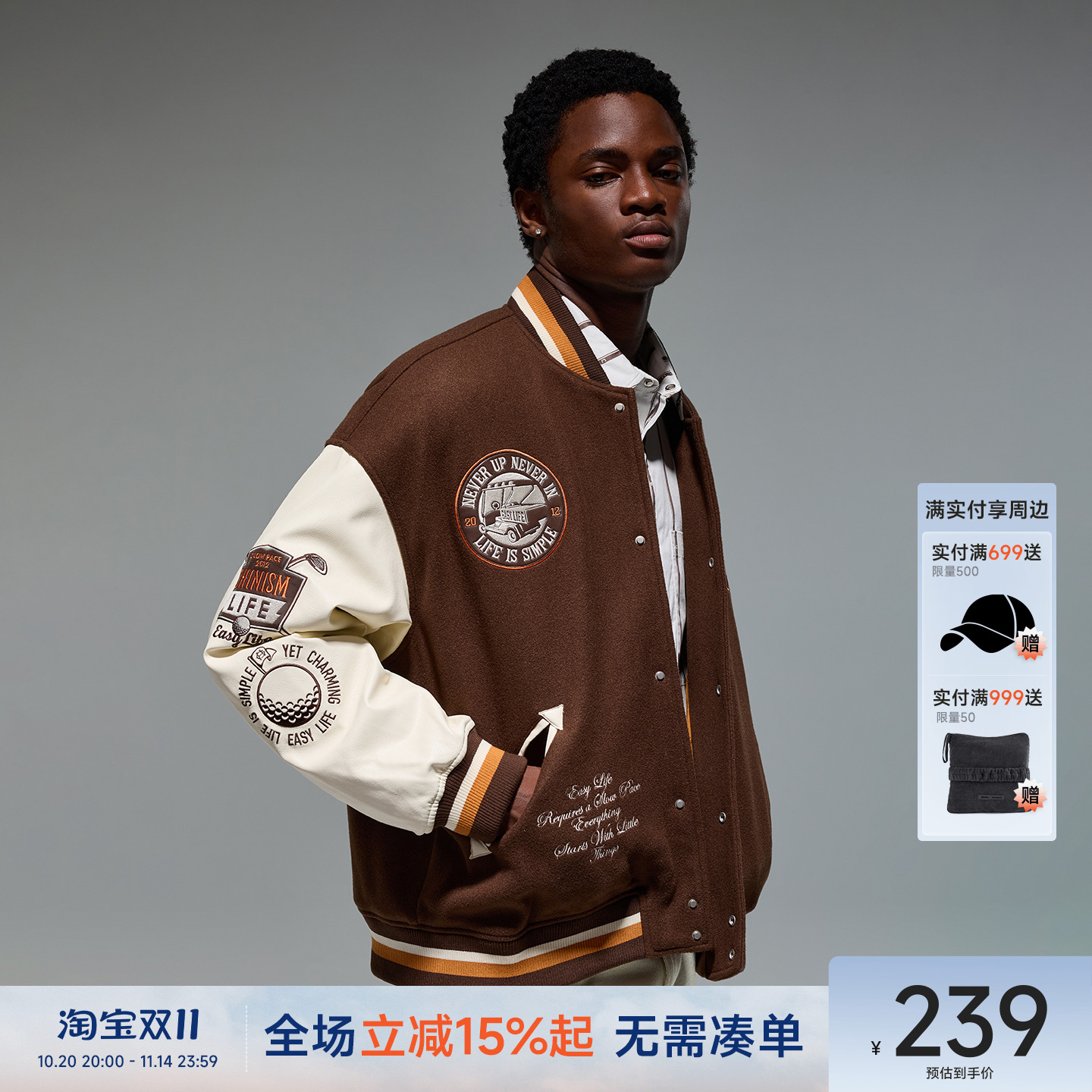 [商场同款]森马夹克男学院风绣花棒球服情侣2025秋季新款外套潮流