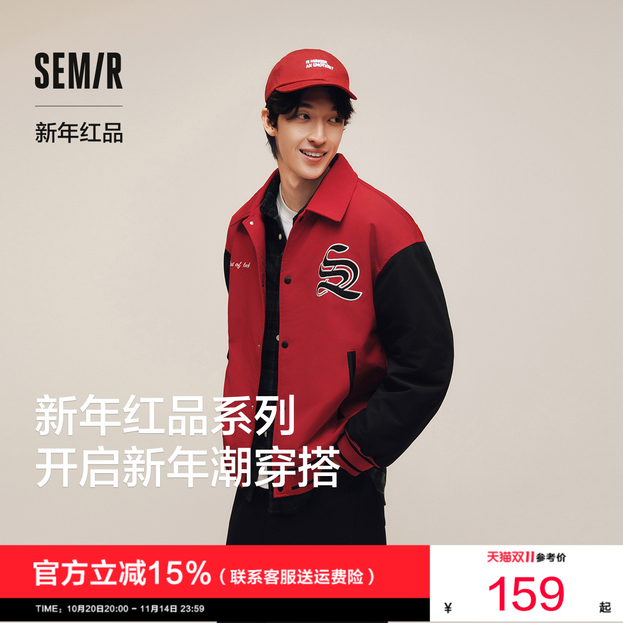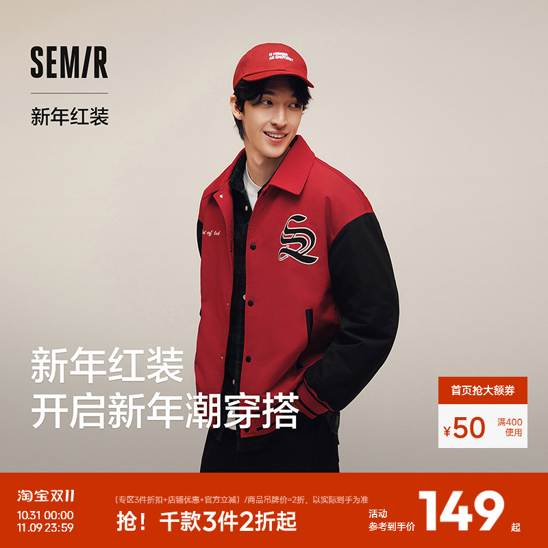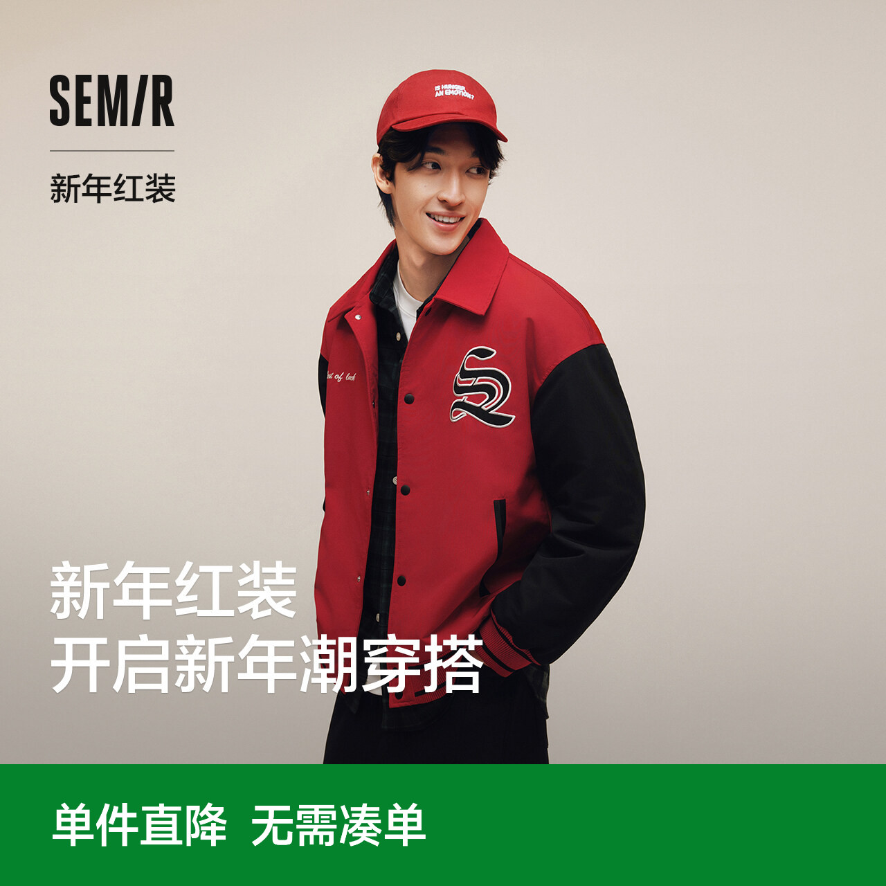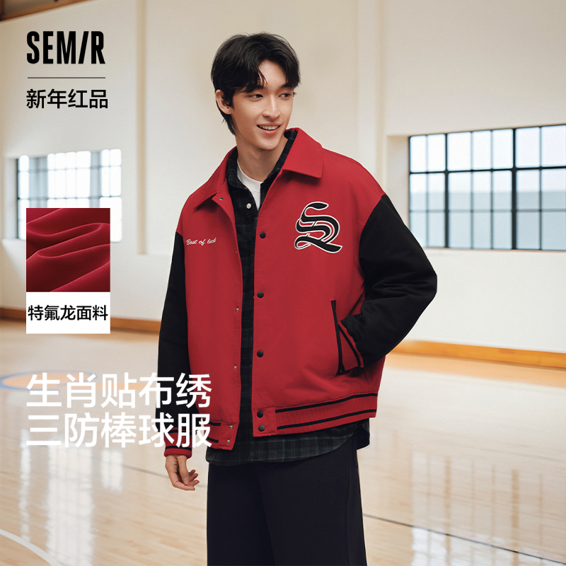 森马夹克男三防防风外套2025秋季新款撞色绣花棒球服情侣新年红色