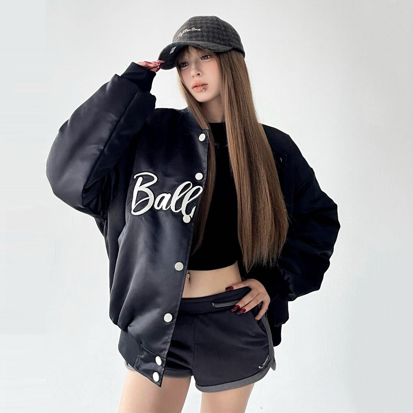 2025秋冬季新款字母绣花棒球服棉衣外套女宽松休闲棉服夹克上衣