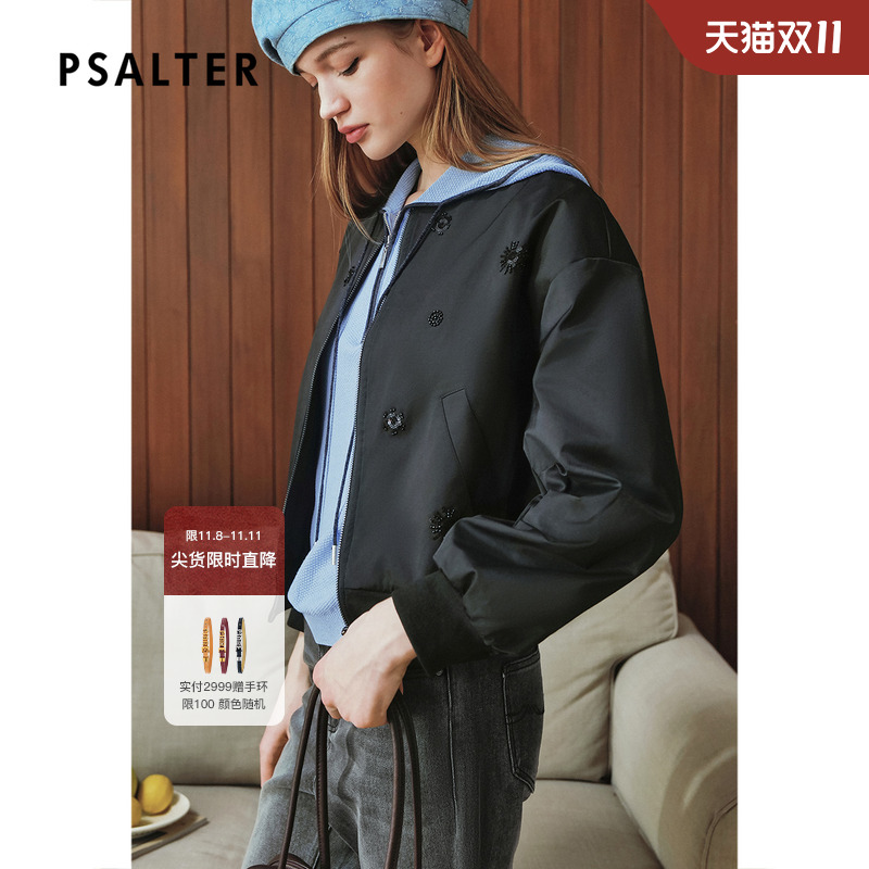 【 趣味春夏】诗篇专选斜纹定位珠片绣花棒球服短外套2025春新款