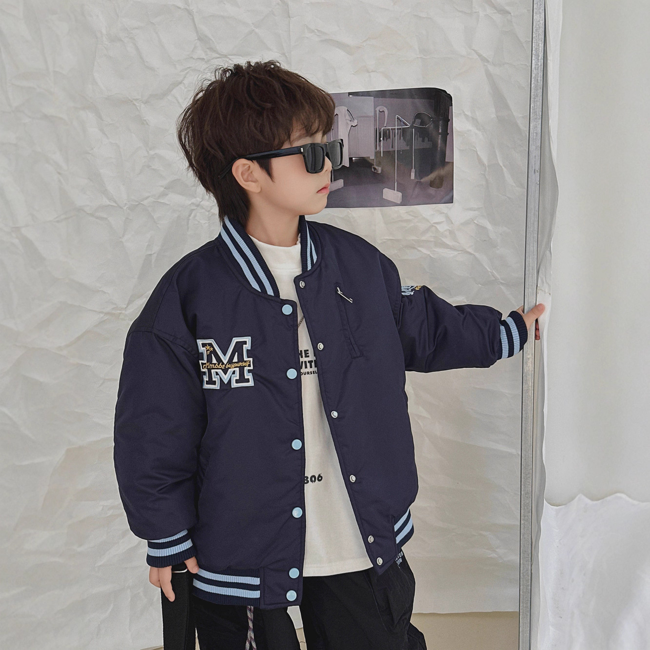 小杰家2025冬季新款男童M字绣花棒球服棉衣外套保暖棉服上衣潮