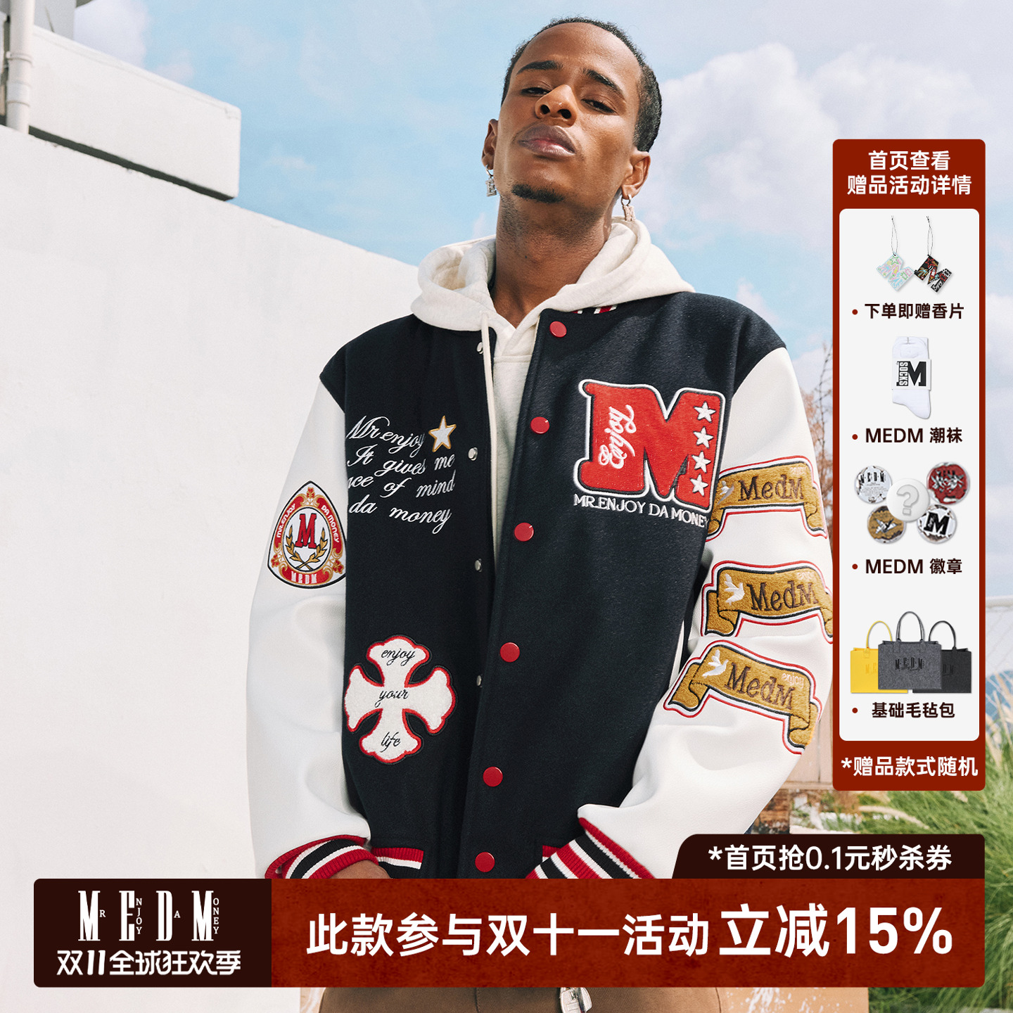 MEDM 星星绣花宽松立领棒球服男春秋季潮牌美式复古休闲百搭外套