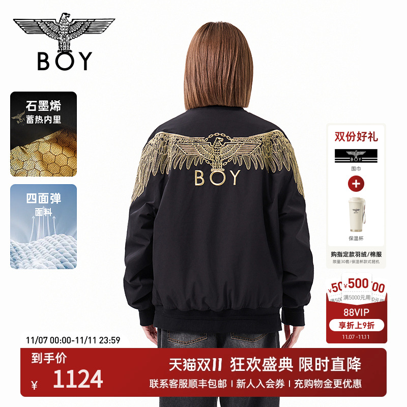 BOYLONDON秋冬潮牌棉衣男女款夹棉外套绣花棒球领夹克棉服N29900