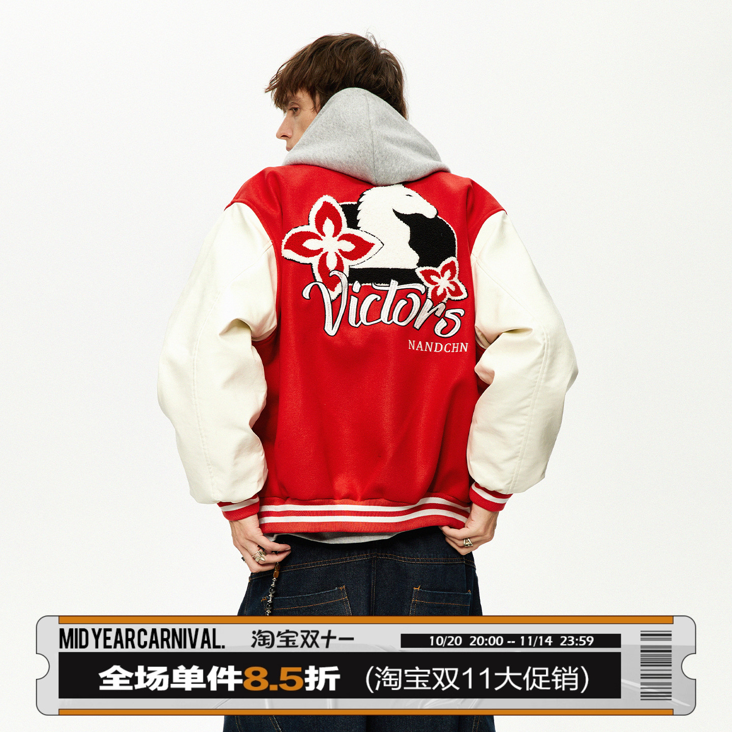 PAPASLILMONSTER【街头潮人】美式复古拼接绣花棒球服夹克外套男