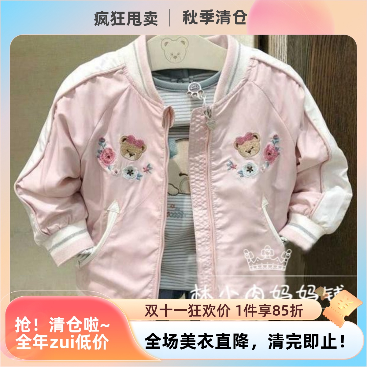 现货25年春秋款小熊女童装婴童绣花棒球服双层休闲夹克外套拉链衫