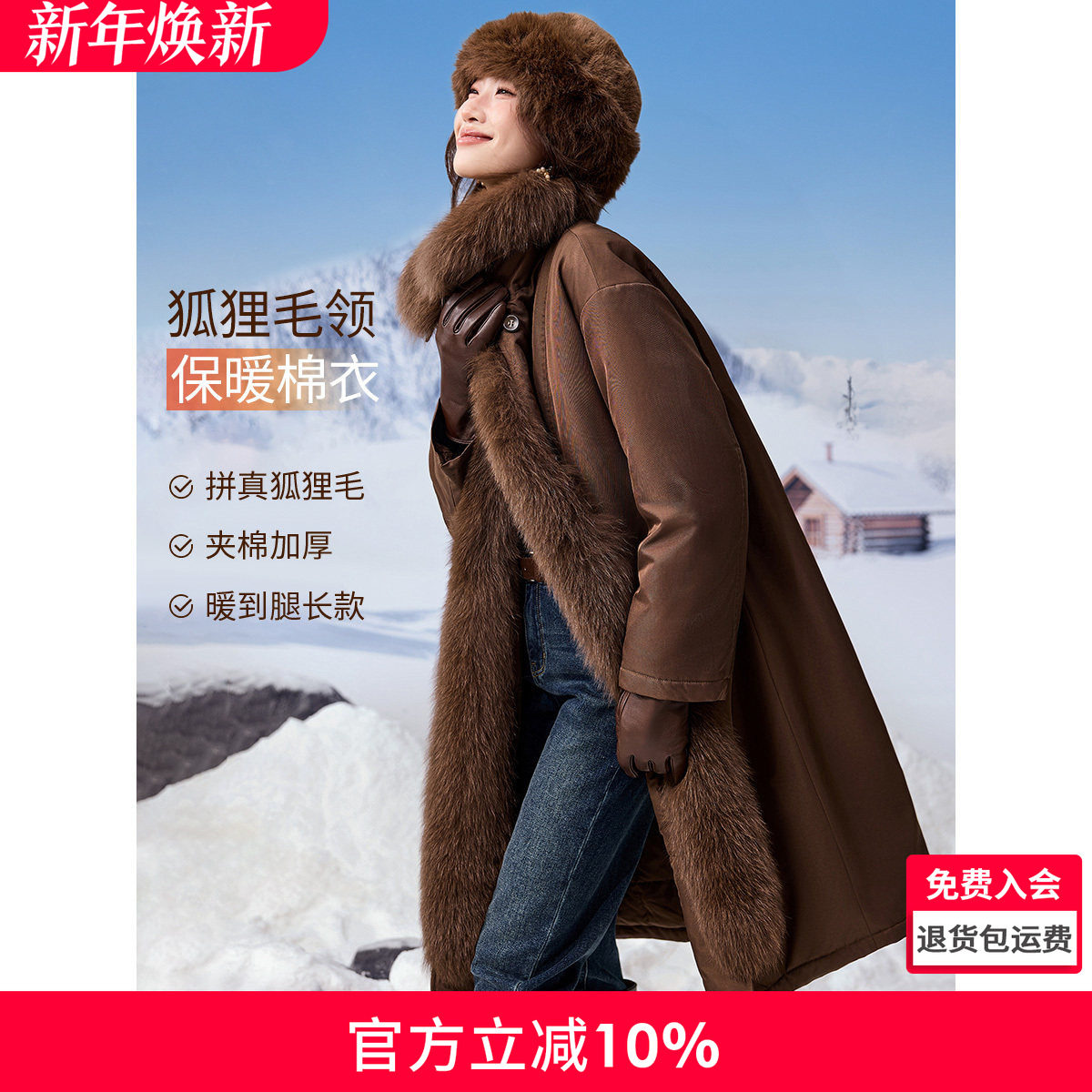 - 皮毛一体长款大衣女