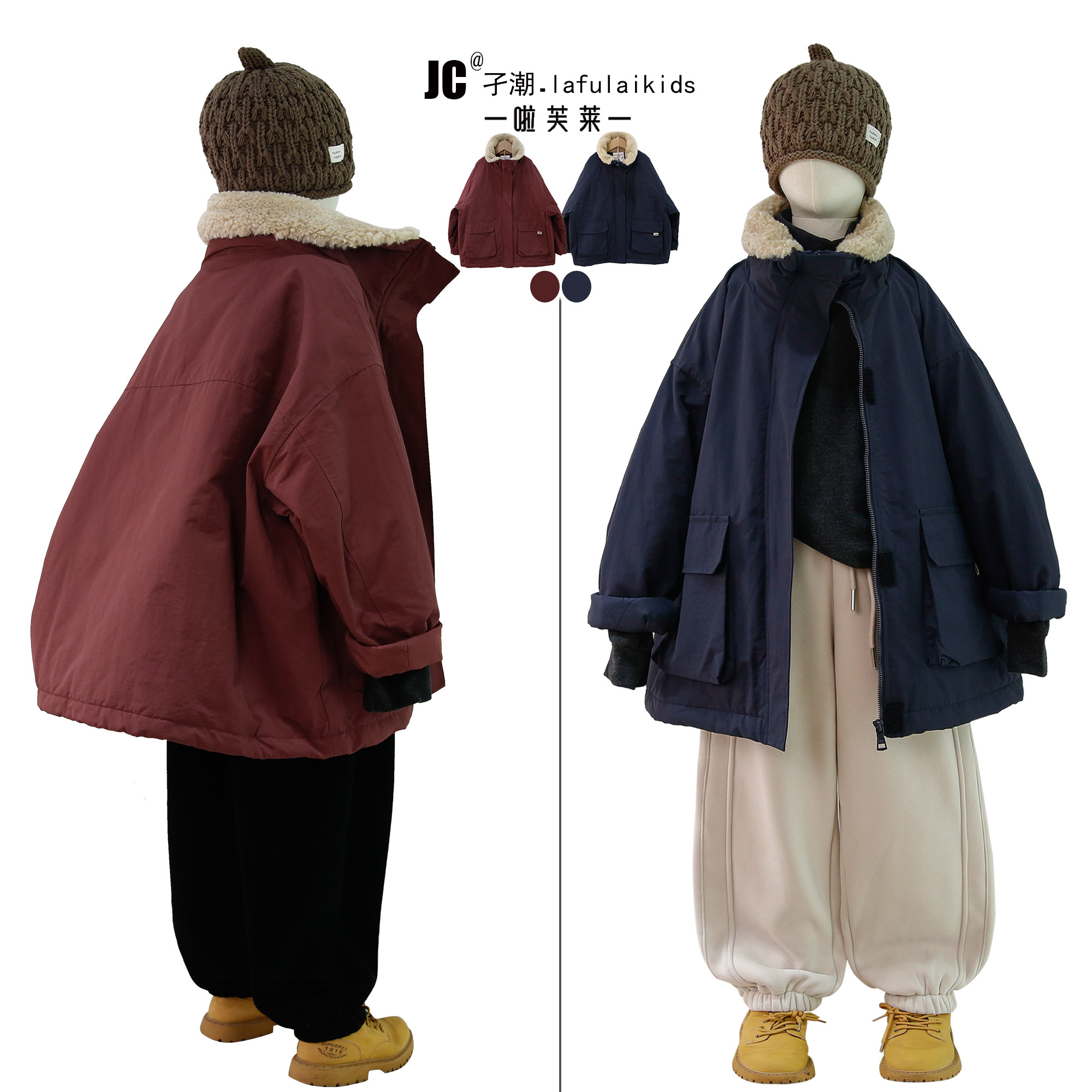 啦芙莱童装2025冬季新款儿童夹棉外套男女童保暖羊羔毛领风衣7519