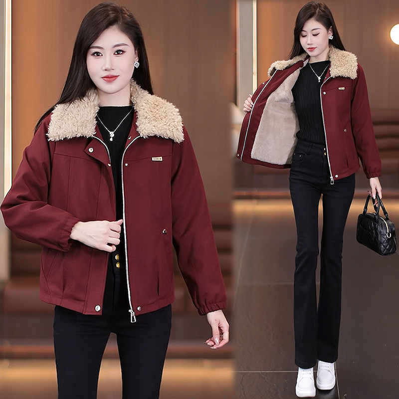 时尚毛领风衣女外套宽松2025冬季新款韩版休闲加绒加厚保暖夹克潮