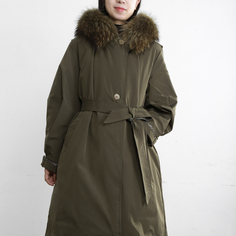 出口单!叭打品质 90白鹅绒羽绒服女 真毛领中长款加厚风衣款外套