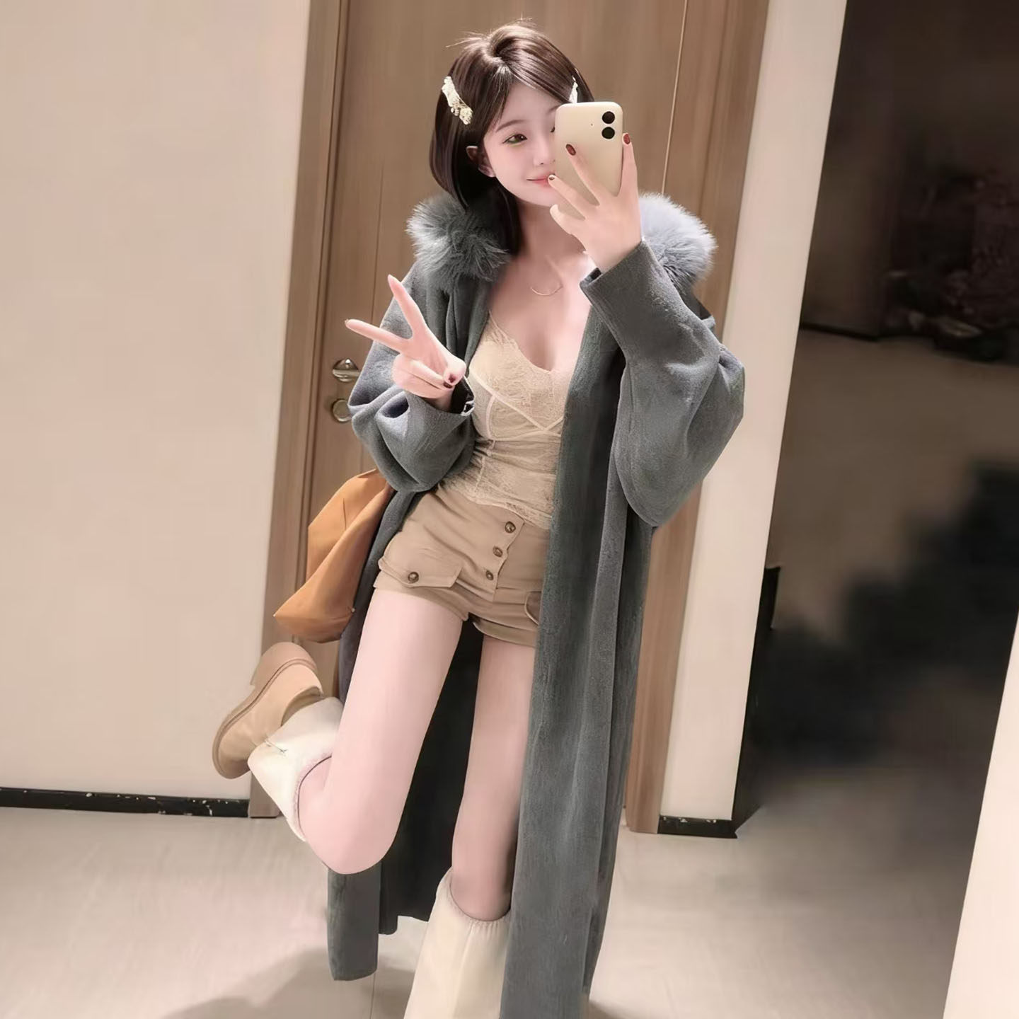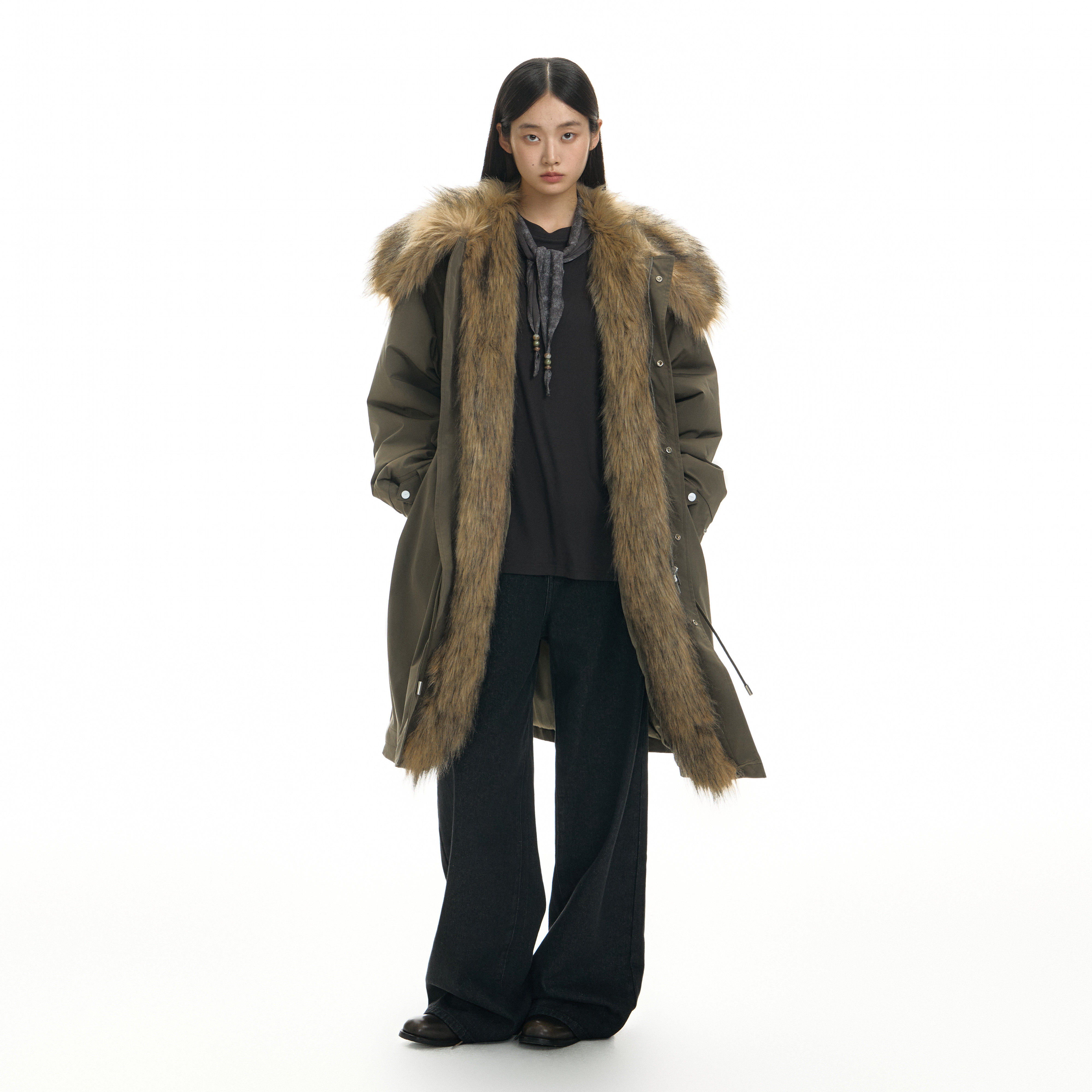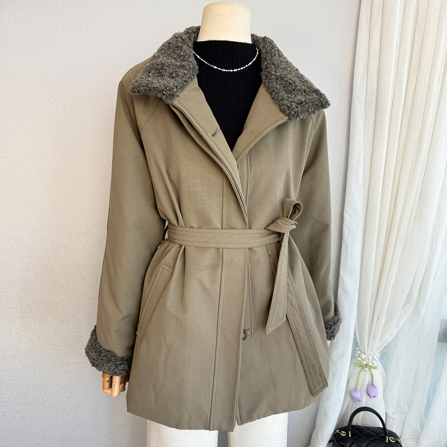 - 皮毛一体中长款大衣