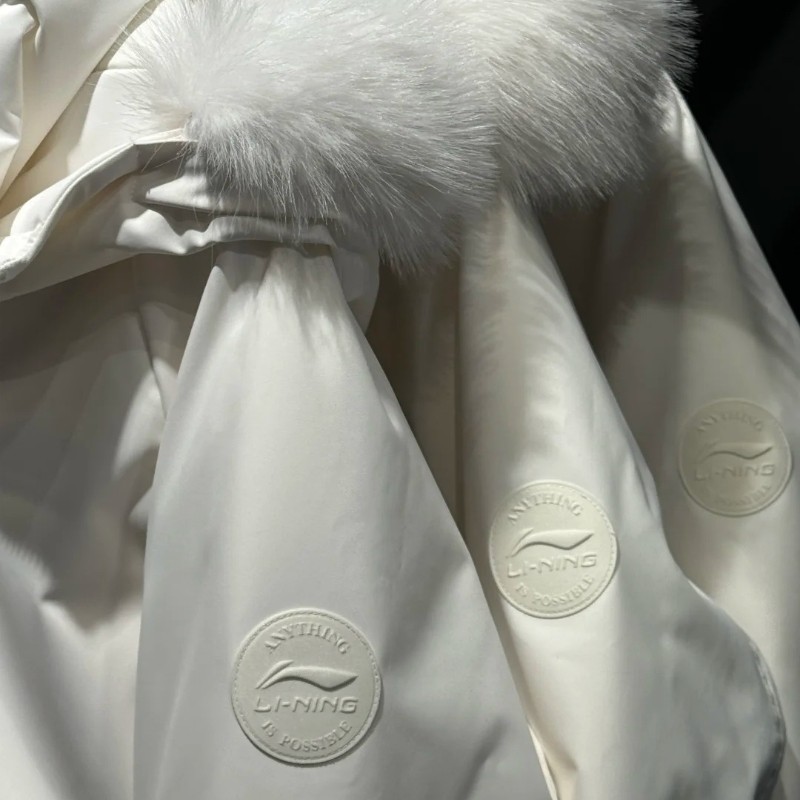 李宁羽绒服女款2024冬季新款运动加厚保暖毛领连帽中长款羽绒风衣